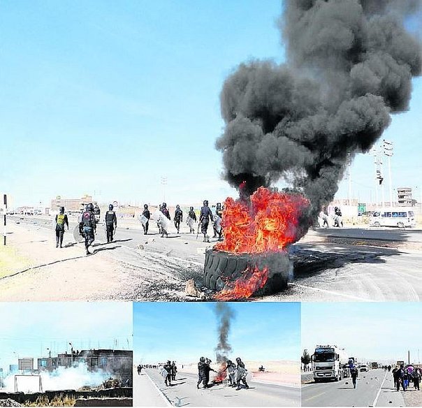 A bombazos, la Policía Nacional disperso a un grupo de maestros agremiados al Sindicato de Trabajadores de la Educación del Perú, que se movilizó desde el ovalo de la salida a Puno hasta el distrito de Caracoto bloqueando en el trayecto la vía con piedras, vidrios y llantas.Los docentes, desde tempranas horas se concentraron frente a la Universidad Andina Néstor Cáceres Velázquez y a las 9:30 horas, aproximadamente, iniciaron una marcha por la vía que conduce a la ciudad de Puno.