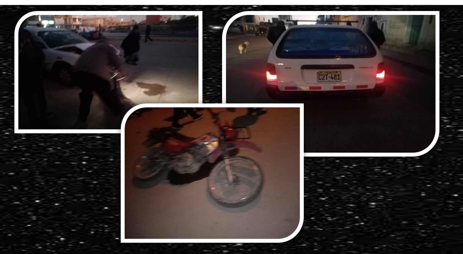 El accidente se produjo cuando el auto corolla de color blanco de placa C2T 481, imprimió bastante velocidad según testigos, que terminó impactando con la moto lineal de color rojo.