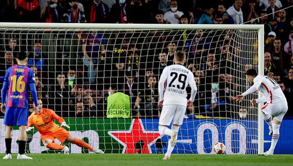 Ante 30.000 compatriotas que dieron una imagen inhabitual en el Camp Nou, el Eintracht, que había empatado 1-1 hace una semana en Alemania, dejó muy herido al Barça en la primera mitad gracias a los zarpazos del serbio Filip Kostic (minuto 4 de penal) y del colombiano Rafael Santos Borré (36).