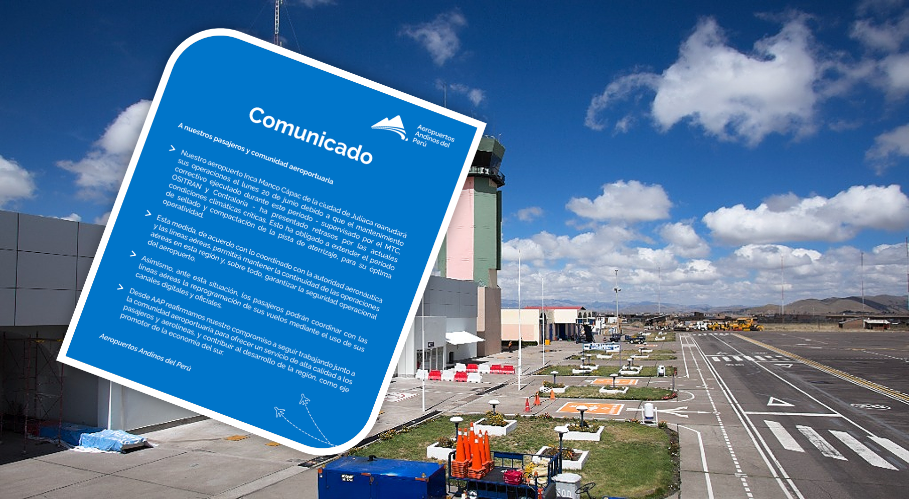 Aeropuertos Andinos del Perú emitió el siguiente comunicado: