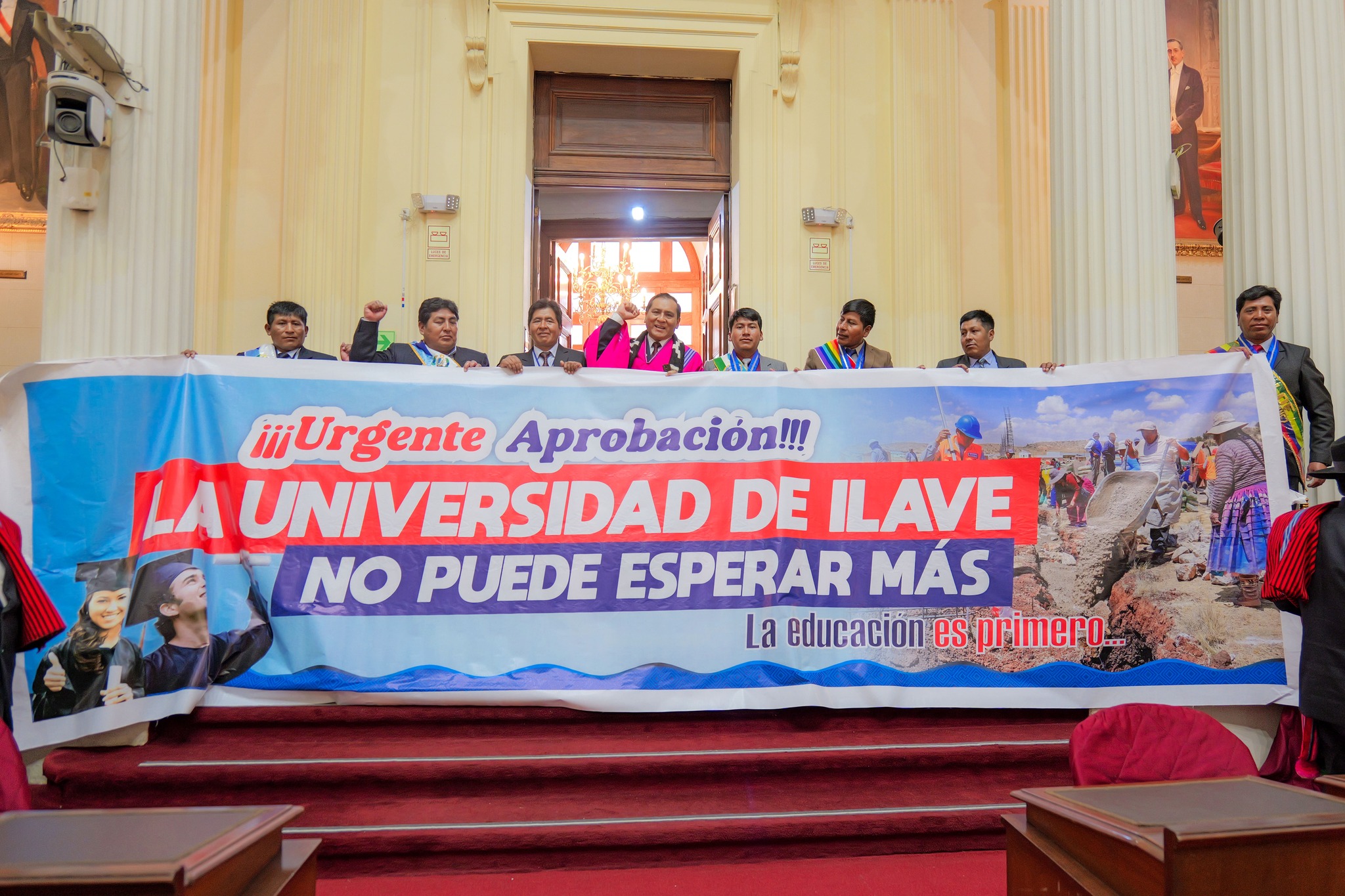 Hoy, en el Hemiciclo Porras Barrenechea, se llevó a cabo una emotiva reunión, entre las autoridades de la provincia de El Collao, Richard Ururi Cueva, quien estuvo acompañado por los alcaldes de los centros poblados de la provincia. En esta ocasión, participaron sobre la creacion de la Universidad en Ilave, los congresistas Flavio Cruz Mamani, Jorge Luis Flores Ancachi, Isaac Mita y otros.