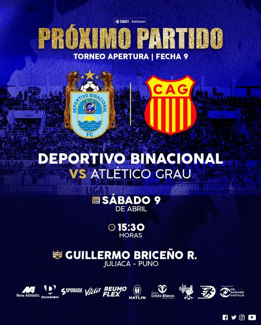 Deportivo Binacional ya está enfocado en su próximo encuentro en la Liga de Fútbol Profesional. Este sábado 9 de abril, desde las 15:30 horas, recibe la visita del Atlético Grau en el estadio Guillermo Briceño Rosamedina.