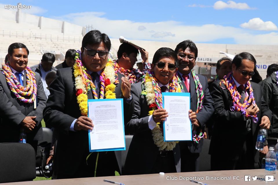 Con la participación del Gobernador Regional (E) de Puno, Agustín Luque Chayña, el Jefe de Coordinación Nacional e Internacional del Instituto Peruano del Deporte (IPD), el presidente del Club Deportivo Binacional, Juan Carlos Aquino, y demás autoridades regionales y locales, se llevó a cabo la firma del convenio interinstitucional para la construcción del sistema de iluminación valorizado en 5 millones de soles.