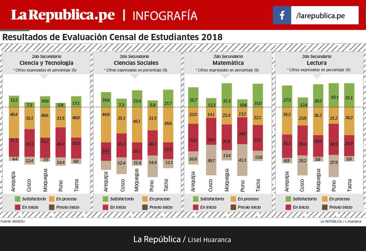 Tacna lidera los buenos resultados, debido a que más de la mitad de sus estudiantes logran entender lecturas y resolver problemas matemáticos de forma satisfactoria. Le siguen en el ranking Moquegua y Arequipa. Las regiones del sur del país tienen los mejores logros en el aprendizaje de sus escolares según la Evaluación Censal de Estudiantes 2018 (ECE). Tacna lidera...