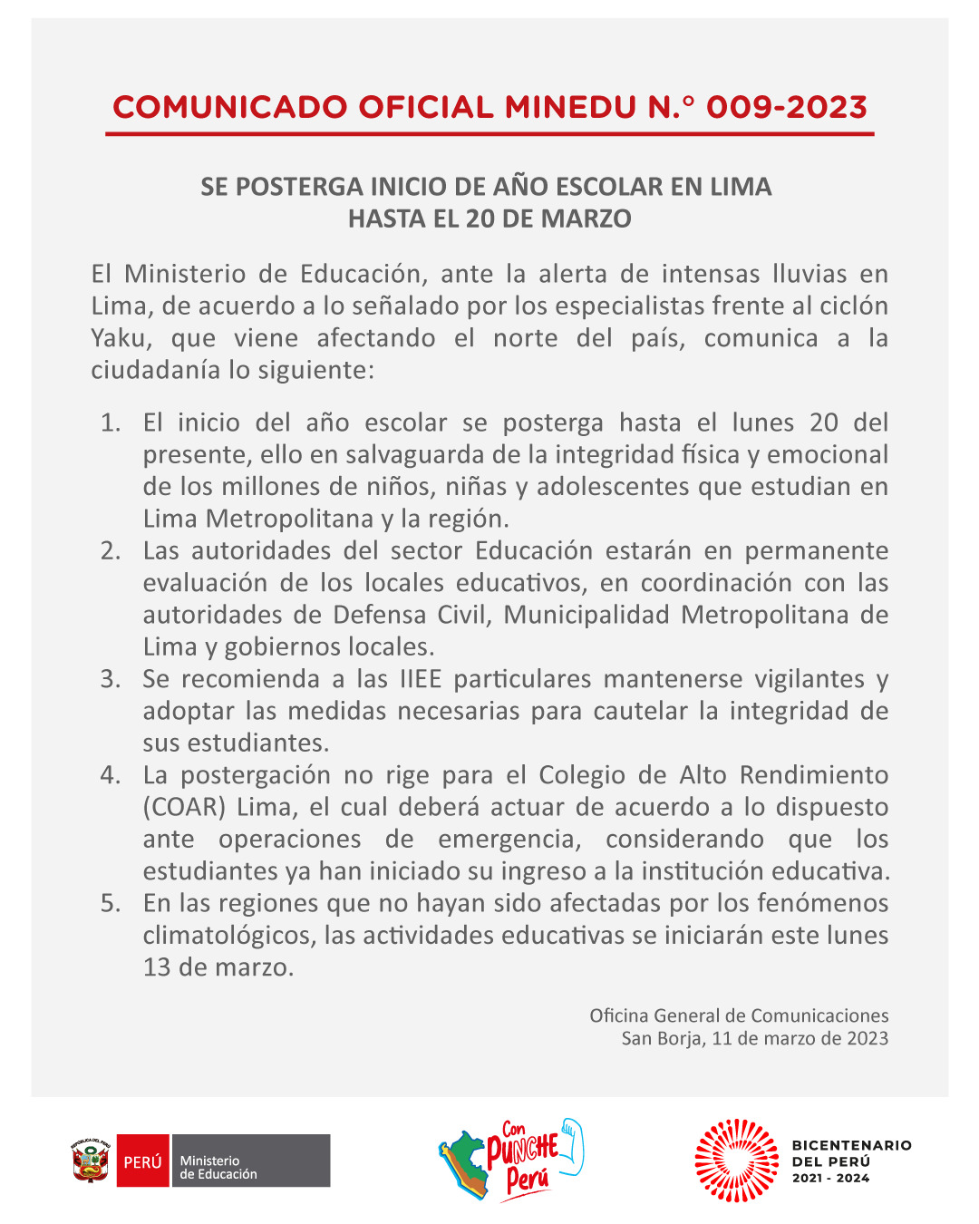 El Senamhi advierte que en las próximas horas, desde la noche del 14 hasta la madrugada del 15, se registrarán lluvias de intensidad fuerte a extrema en gran parte de la región Lima, principalmente en la cuenca media y baja, debido al incremento de humedad tropical, generando inestabilidad frente a las costas. El Servicio...
