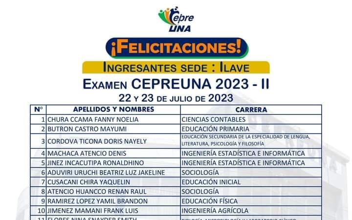 El CEPREUNA-Sede Ilave obtuvo un gran éxito al lograr 28 nuevos ingresantes a la Universidad Nacional del Altiplano (UNA) de Puno, superando a otras sedes.