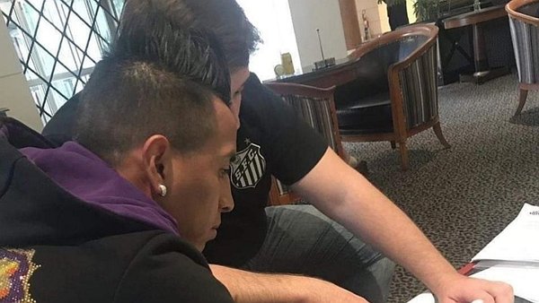 Completamente confirmado. Christian Cueva llegó a Brasil y de inmediato se reunió con los directivos de Santos FC para firmar su vínculo con el equipo brasileño. Una imagen ya dio la vuelta al mundo en el preciso momento donde el jugador de la selección peruana, firma su nuevo contrato.