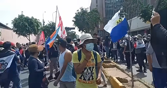 La delegación de puneños y demás comitivas protestaban con banderas y lo realizaban de manera pacífica, pese a ello, la policía empezó a disparar al cuerpo.