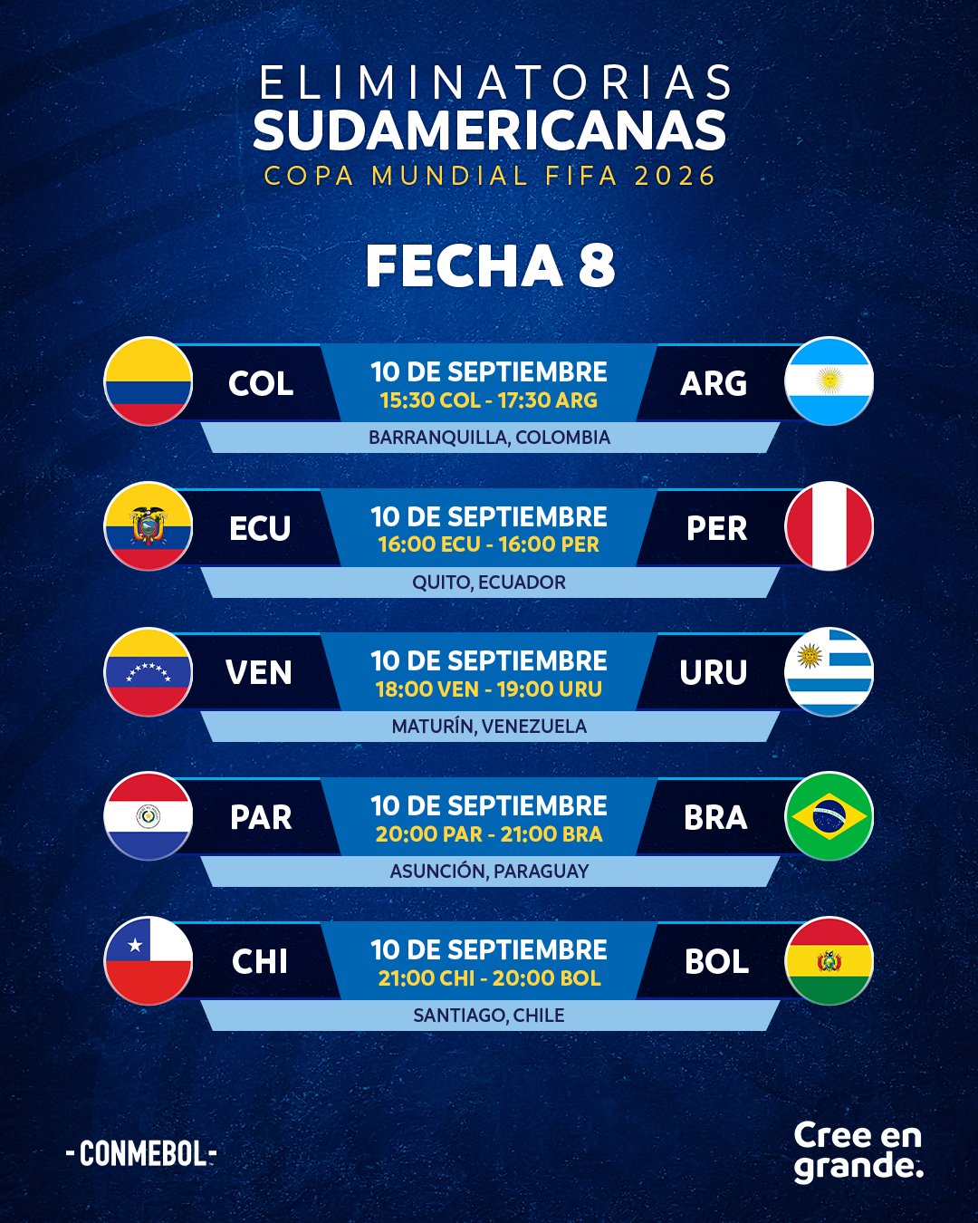 Programación de la fecha 8 de las Eliminatorias Mundial 2026