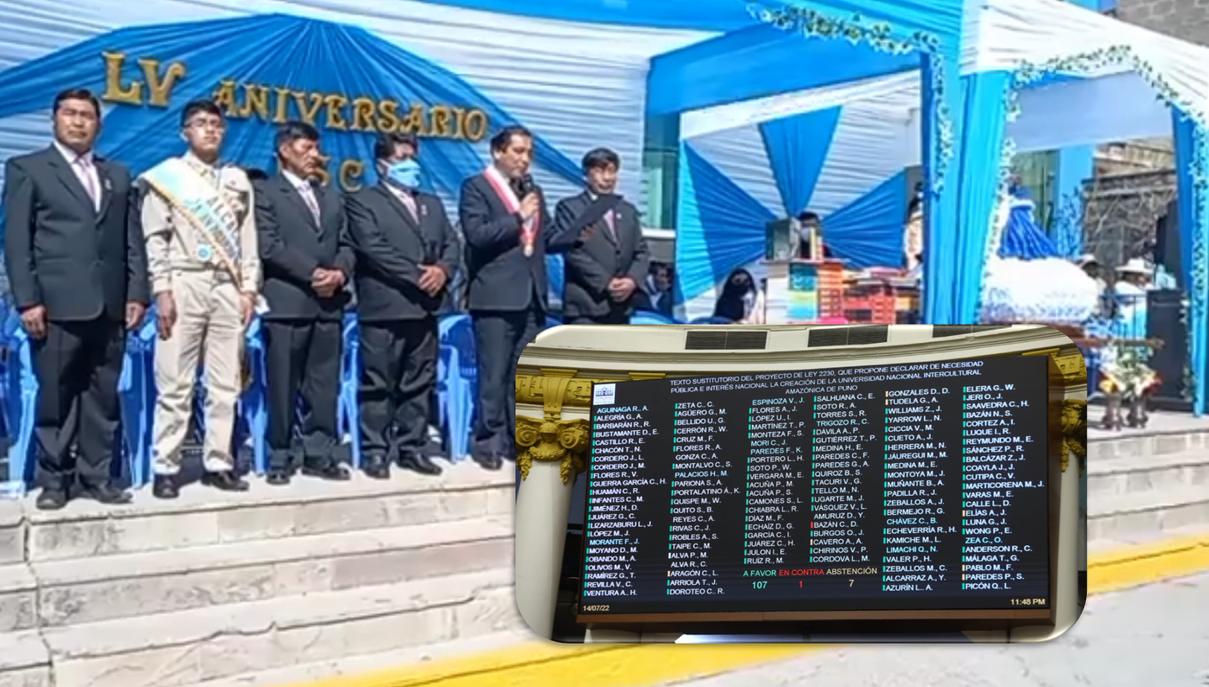 Vencido el cuarto intermedio, el Pleno del Congreso aprobó el dictamen que declara de interés público y nacional la creación de la Universidad Nacional Intercultural Amazónica de Sandia con sede principal en la provincia de Sandia y de la Universidad Nacional Intercultural Aymara en Puno con sede principal en el distrito de Ilave, provincia de
