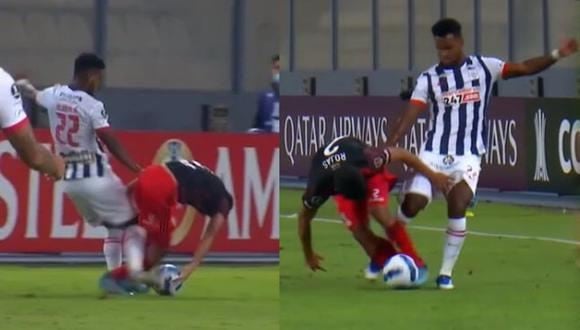 Rojas recibió una violenta patada del peruano Rodríguez sobre el final del partido que ganó River Plate en Lima en la primera jornada del Grupo F de la Copa Libertadores.