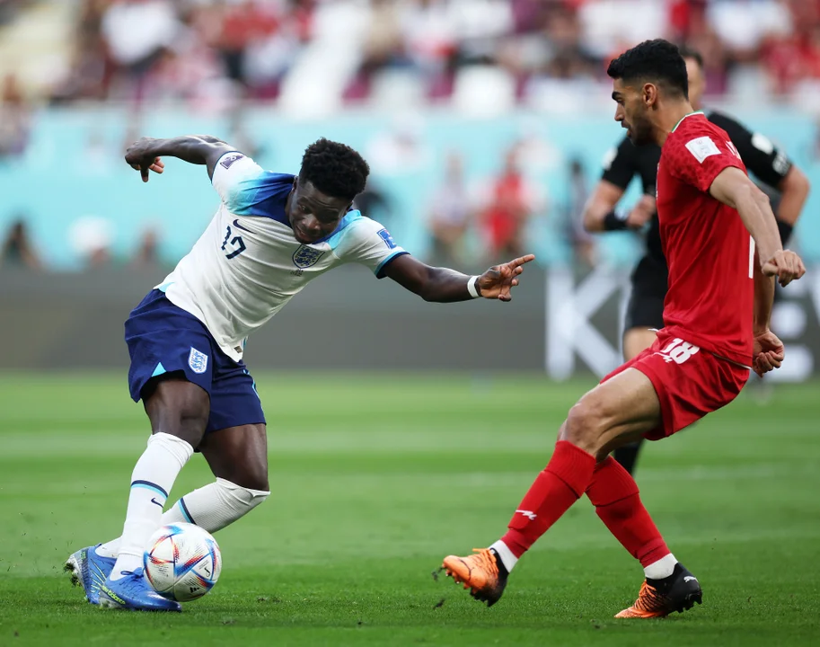 Inglaterra le ganó a Irán por 6 a 2 en la fecha 1 del Grupo B, Los europeos mostraron su jerarquía y aplastaron a los asiáticos con un gran despliegue. Los goles fueron convertidos por Bellingham, Saka en dos ocasiones, Sterling, Rashford y Grealish para los ingleses, descontó en dos ocasiones para el conjunto iraní, Mehdi Taremi (65´y 113´).