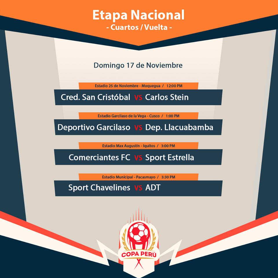 Programación de los partidos de vuelta de cuartos de final de la Copa Perú