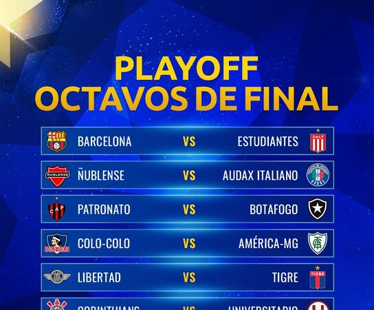 Se confirmaron los emparejamientos para conocer a los ocho últimos conjuntos que van a los octavos de final de la Copa Sudamericana.