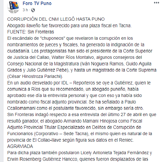 CORRUPCIÓN DEL CNM LLEGÓ HASTA PUNO»Abogado ilaveño fue favorecido para una plaza fiscal en Tacna»