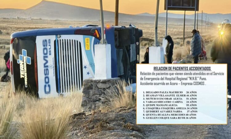 De la misma manera, algunos pacientes, mencionaron que varios pasajeros son de nacionalidad boliviana y la atención en el hospital ha sido precaria, “nos han atendido en el suelo, una paciente está en una camilla en el pasillo; además, no nos explican cómo debemos tomar las pastillas y nos han cobrado, el SOAT de la empresa no está cubriendo los gastos”, señalaron.