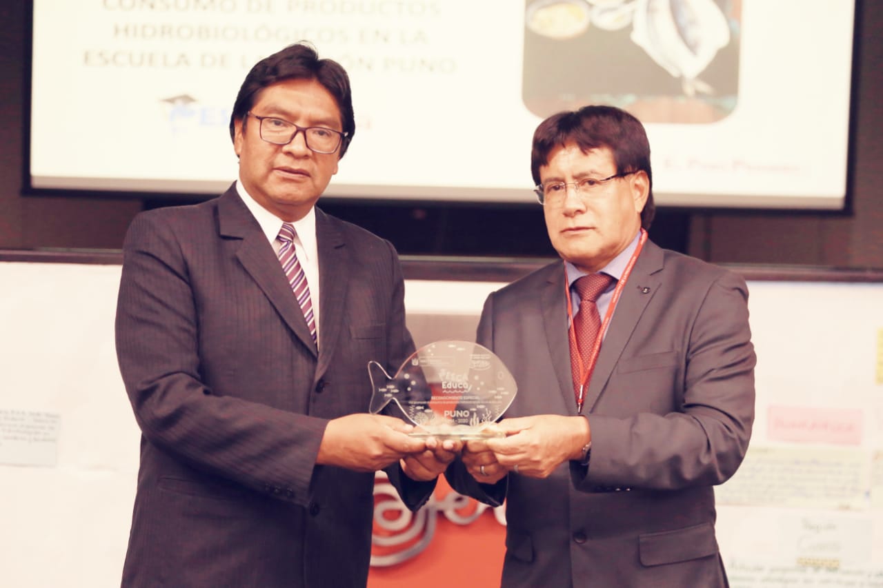 El Director Regional de Educación Puno, Prof. Mario Benavente Llerena fue quien recibió este reconocimiento, por el cumplimento de compromisos en el último PESCAEduca, así mismo dijo “que se emitirán directivas con el objetivo de promover el consumo de recursos hidrobiológicos para combatir la anemia en la región”.