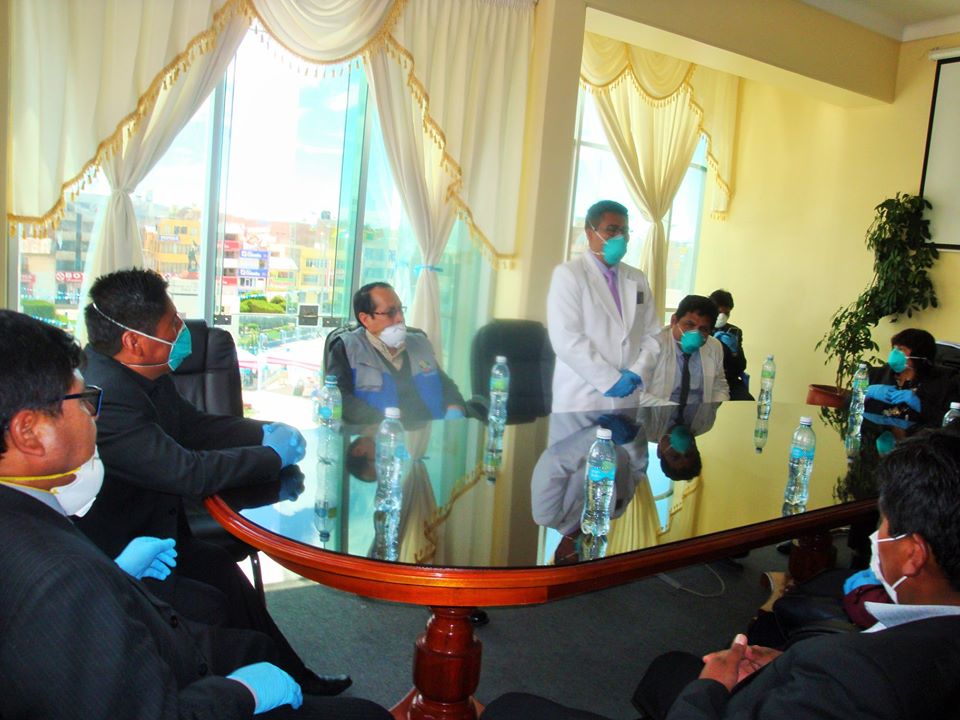 Ante la presencia del Gobernador Regional de Puno (e), Agustín Luque Chayña y otras autoridades provinciales, el Directo de la Red de Salud El Collao médico Moisés Chambi Condori, informo a las autoridades sobre la situación actual de la pandemia COVID-19 en la provincia de El Collao.