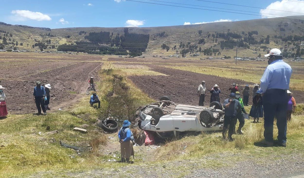 Por otro lado, en la carretera Puno-Desaguadero a la altura centro poblado de Camata, en el distrito de Platería, se registró otro accidente de tránsito, donde el auto de placa de rodaje AHD-285 se despistó y dio varias vueltas de campana.