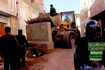 En un operativo conjunto realizaron el tapiado, con bloque de cemento, del ingreso principal de la discoteca “Aquas-Valle Verde”, ubicada en el jirón Ramón Castilla Nro 228, la cual era administrado por Janet Calisaya y Albino Zapana.