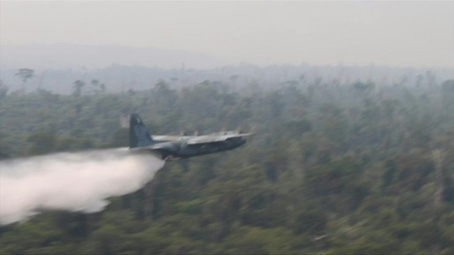 Brasil desplegó este domingo dos aviones Hércules C-130 en un vasto operativo militar para apagar los incendios que devoran partes de la Amazonía, mientras se anuncian nuevas protestas contra el presidente Jair Bolsonaro por su gestión ante los peores incendios en años en la mayor selva tropical del mundo.