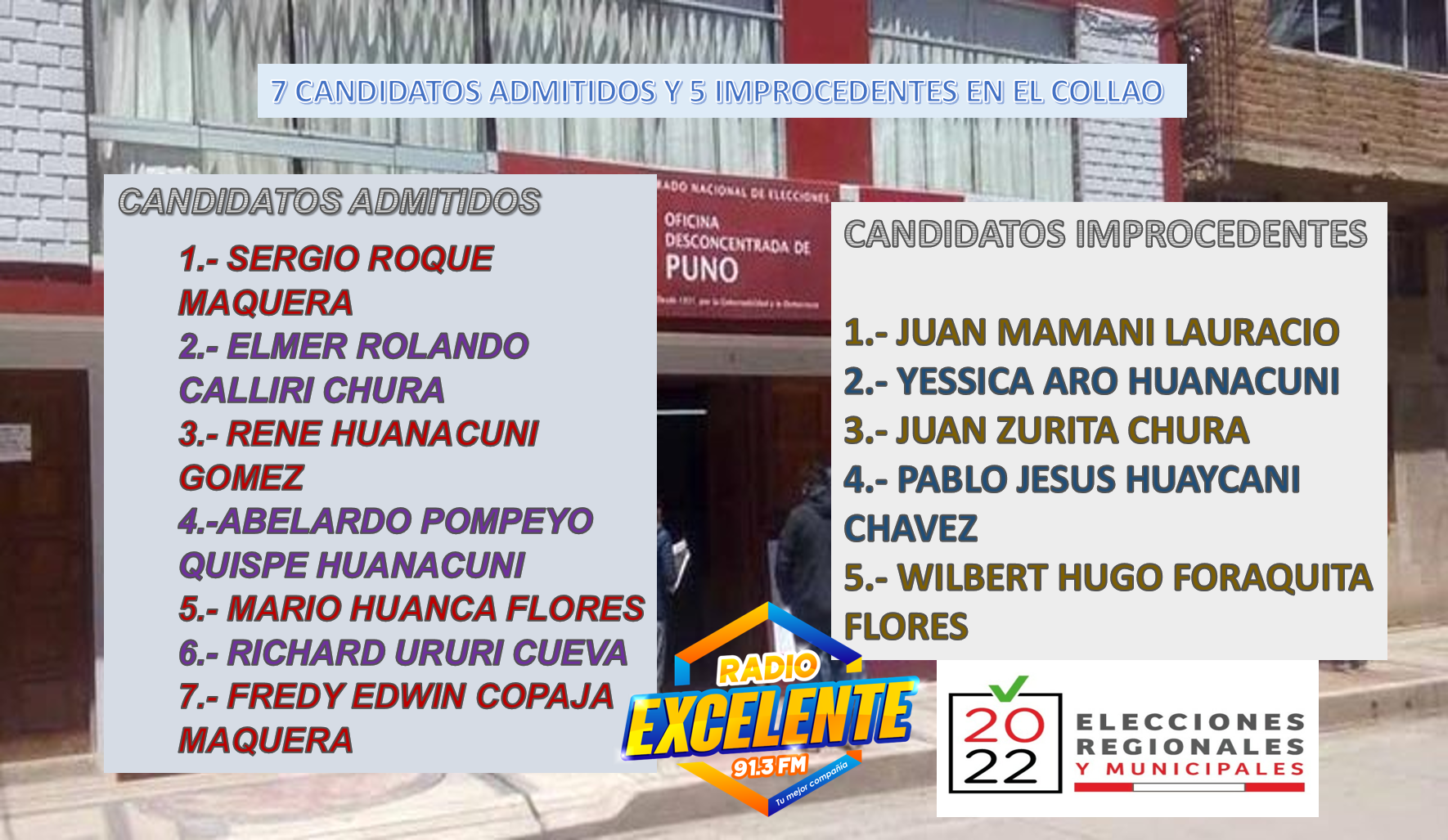 ELECCIONES 2022: ESTOS SON LOS CANDIDATOS ADMITIDOS Y IMPROCEDENTES EN EL COLLAO