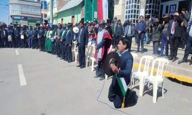 El burgomastre se arrodilló y pidió perdón a la población por su obsecuencia, que según le endilgaron, colisiona con el orgullo del aymara.