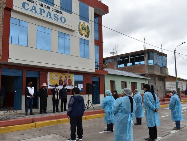 En el distrito de Capaso de la provincia de El Collao, se realizó el lanzamiento de la Vacunación Contra la Covid-19 para Niñas y Niños de 5 a 11 años de edad y la actividad de Atención Integral de Salud, con la presencia de autoridades locales, entre ellos el Alcalde Distrital de Capazo Lic. Juan Tuco Ordoñez, el Subprefecto Sr. Verilio Uruchi Gutiérrez y de salud el Director de la Red de Salud El Collao MC. Ronald Chata Condori acompañado por el Jefe de la Micro Red de Mazocruz Lic. Jesús Verastegui Calla, acto que se llevó a cabo el día de hoy domingo (30-01-22) en la plaza principal de la localidad de Capaso.