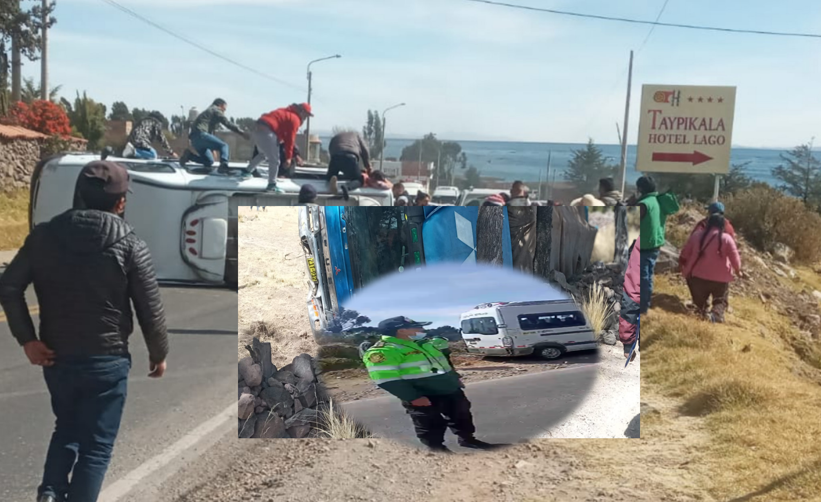 Hasta el momento 4 heridos, todos pasajeros de la combi, han sido trasladados al hospital regional de Puno en un patrullero de la comisaría de Chucuito y en un auto particular.