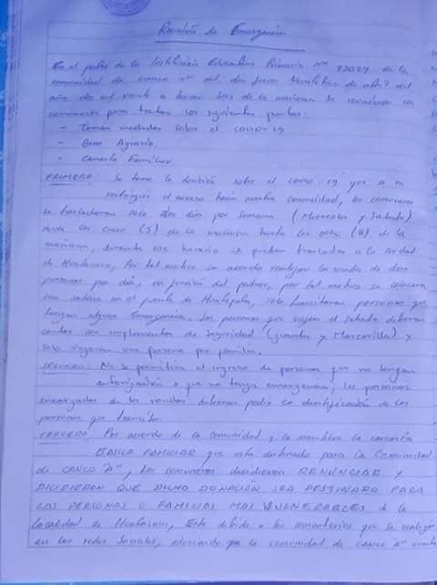 Buen dia a todos del distrito de huatasani, mediante el presente medio ponemos en conocimiento que las autoridades y miembros en general de la comunidad de CCANCO en pleno acuerdo decidimos, que las canastas básicas familiares destinadas para nuestra comunidad sean destinadas para familias vulnerables del distrito, ya que la comunidad de Ccanco en mutuo acuerdo decidimos no recibir las canastas y que estás sean destinadas a las personas realmente vulnerables del pueblo.