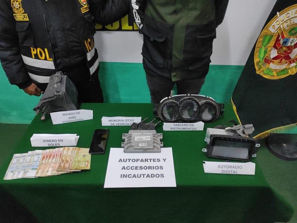 Luego que un ciudadano realizara la denuncia por el robo de las autopartes de su vehículo, los agentes de la policía nacional realizaron un operativo en inmediaciones del Jr. Carabaya con el Jr. Libertad en donde intervinieron a Anthony Cristian Miranda Calsin (26) quien tenía varias autopartes y no tenía la documentación para sustentar la propiedad de los bienes.