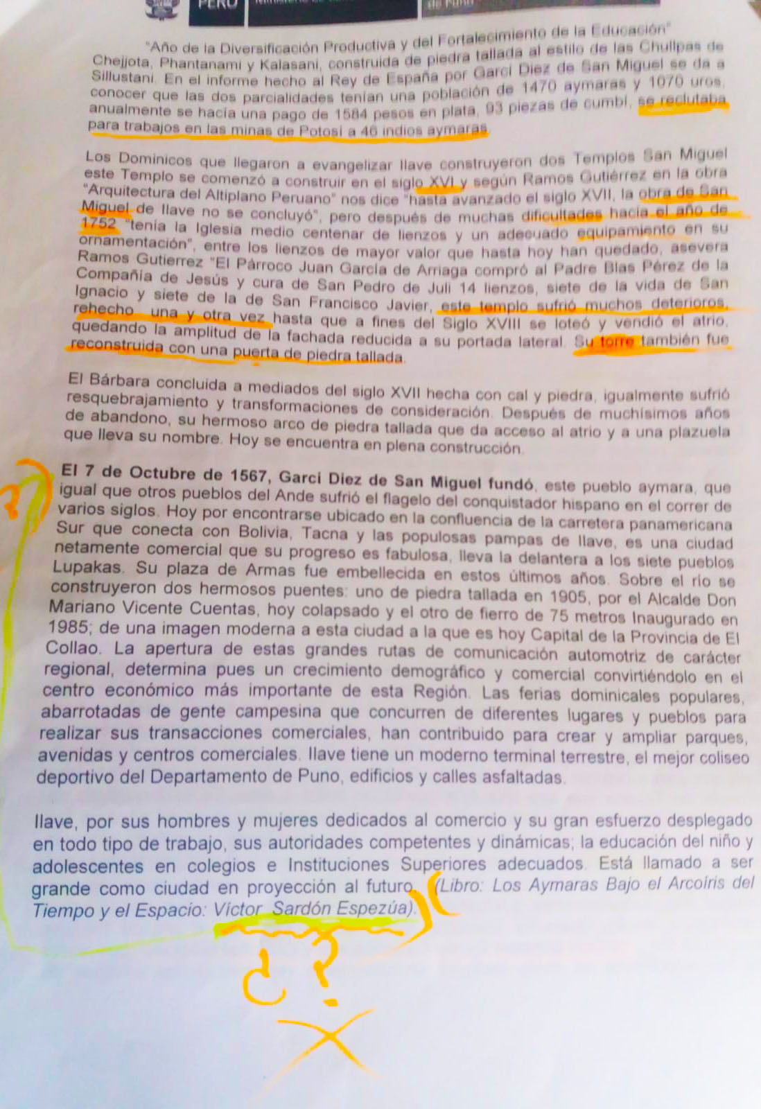 Ilave o Hilawe cumple este año 457 años de vida política y eclesial como pueblo de Ilave. En el documento suscrito por el corregidor Antonio de Avila Y Peñaloza, por los caciques citados, por la parcialidad de Anansaya, Francisco Wilcacutipa y por la parcialidad de Urinsaya, Cristobal Maquera, documento refrendado por el escribano Francisco de Santander, constituye la partida de nacimiento del pueblo de Ilave, como población española, política, administrativa, económica(tributos) y Eclesial.
