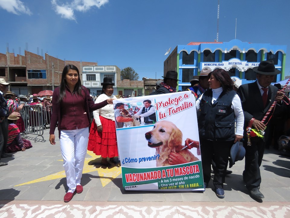 Así mismo se llevó una campaña de sensibilización, Por este motivo y a puertas de celebrar el Día Mundial Contra la Rabia el cual se celebra este 28 de setiembre, el Centro de Salud de Pilcuyo se organizó para brindar información para combatir este peligroso mal así como invocar a los dueños de mascotas que lleven al Centro de Salud a estos animales a ser vacunados oportunamente. Cabe destacar que también se desarrolló el cobro de bonos del Programa Nacional de Atención Solidaria (PENSION 65) acción que previamente tuvo una ceremonia y desfile en el cual el Centro de Salud de Pilcuyo se hizo presente con una activa participación.