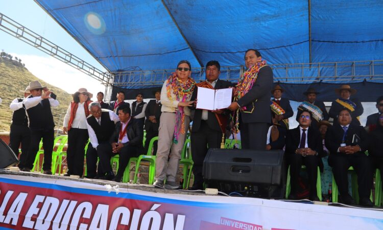 En un acto protocolar realizado en la sede central de la Universidad Nacional Tecnológica Intercultural de Pomata, ubicada en el barrio Pueblo Libre, se llevó a cabo la entrega oficial de la autógrafa de la Ley N.° 32578, norma que formaliza la creación de esta nueva casa de estudios superiores.