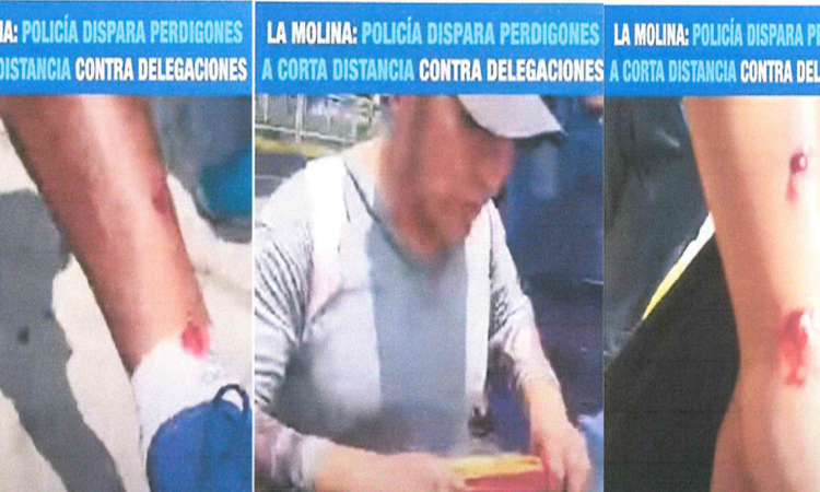 - Hombre de 40 años de edad aproximadamente contextura delgada, tez trigueña, vestía polo color celeste, gorra color negro marca “puma”, con short y zapatillas azules, quien fue herido en la pierna izquierda por impacto de lo que sería perdigones el dia 02 de marzo de 2023 en la ciudad de Lima, en el distrito de La Molina en inmediaciones del Ovalo Monitor, a razón de las protestas sociales. Urge lo solicitado en la investigación seguida contra los que resulten responsables en agravio de los heridos antes mencionados.