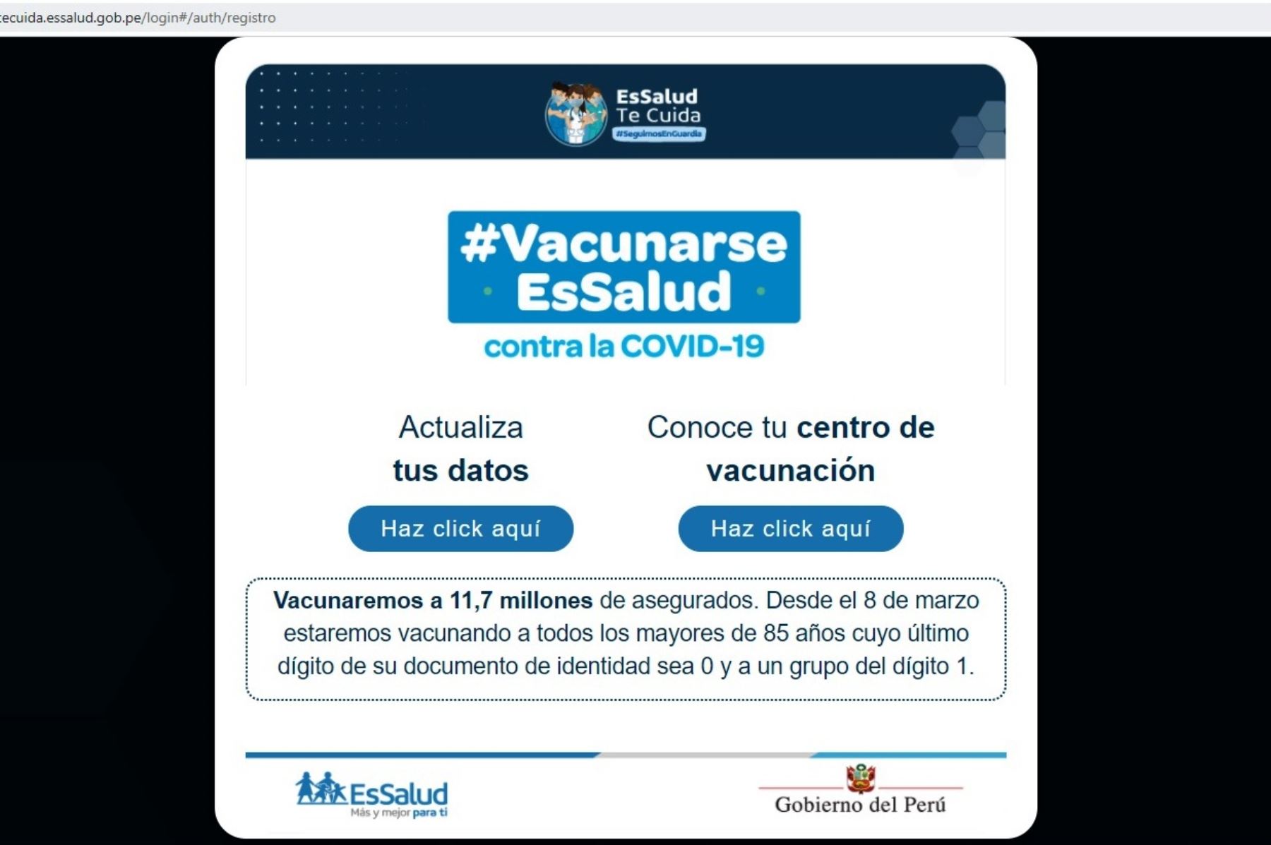 Molinelli explicó que, luego de registrarse en la página de Essalud Te Cuida, los asegurados podrán actualizar sus datos, bajar el consentimiento informado e ir a la sección donde se te programará la vacuna en su momento