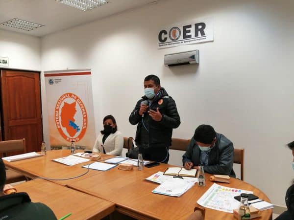 Previo a la realización de este ejercicio de simulación, se reunieron las autoridades y representantes del Centro de Operaciones de Emergencia Regional – COER Puno, el Servicio Nacional de Meteorología e Hidrología – SENAMHI, Centro Nacional de Estimación, Prevención y Reducción del Riesgo de Desastres, del Instituto Nacional de Defensa Civil y organizaciones no gubernamentales con las autoridades ediles de los distritos en mención.