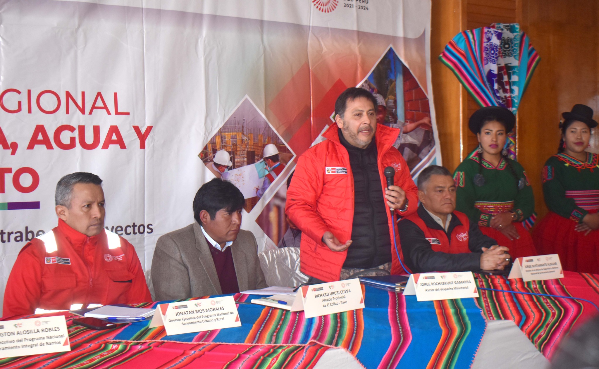 En el día de hoy se realizó la entrega formal de dicho convenio, el cual fue suscrito a finales del mes de junio. Representantes del Ministerio de Vivienda Construcción y Saneamiento, encabezados por Jorge Rochabrunt Gamarra, Asesor del MVCS, y Jonatan Rios Morales, Director Ejecutivo del Programa Nacional de Saneamiento Urbano, visitaron la ciudad de Ilave para llevar a cabo una mesa de trabajo regional sobre vivienda y saneamiento. Asimismo, participaron autoridades distritales, de centros poblados y representantes de barrios y sociedad civil.