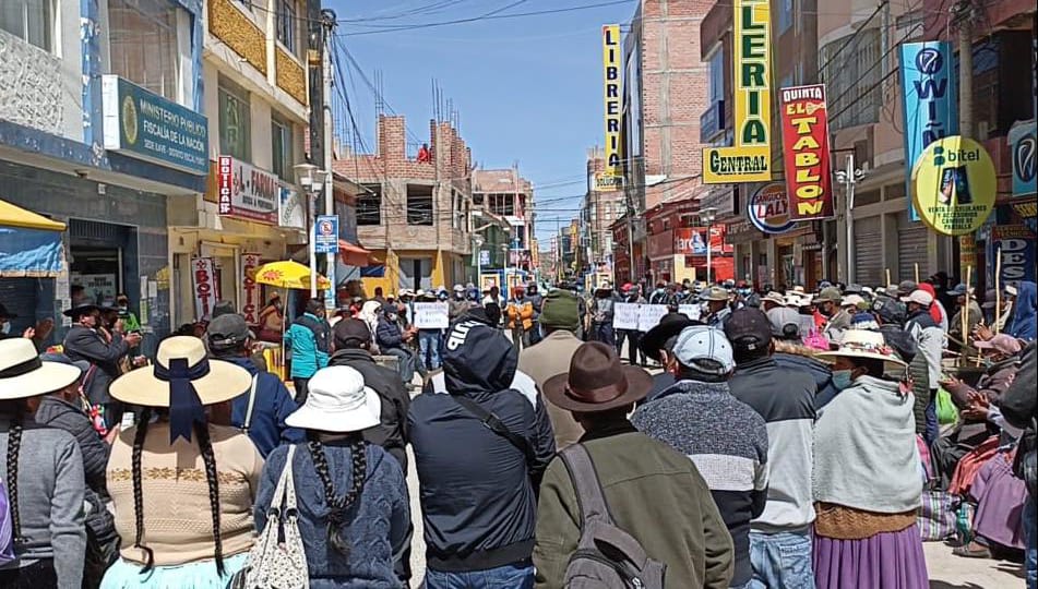 Un buen número de pobladores del Centro Poblado de Chijichaya, este martes se constituyeron a la Fiscalía provincial de El Collao, a fin de protestar en contra de las denuncias realizadas por la Empresa “CLARO”, en contra de dos autoridades, Fredy Jinez Huanacuni y René Maquera Arcata.
