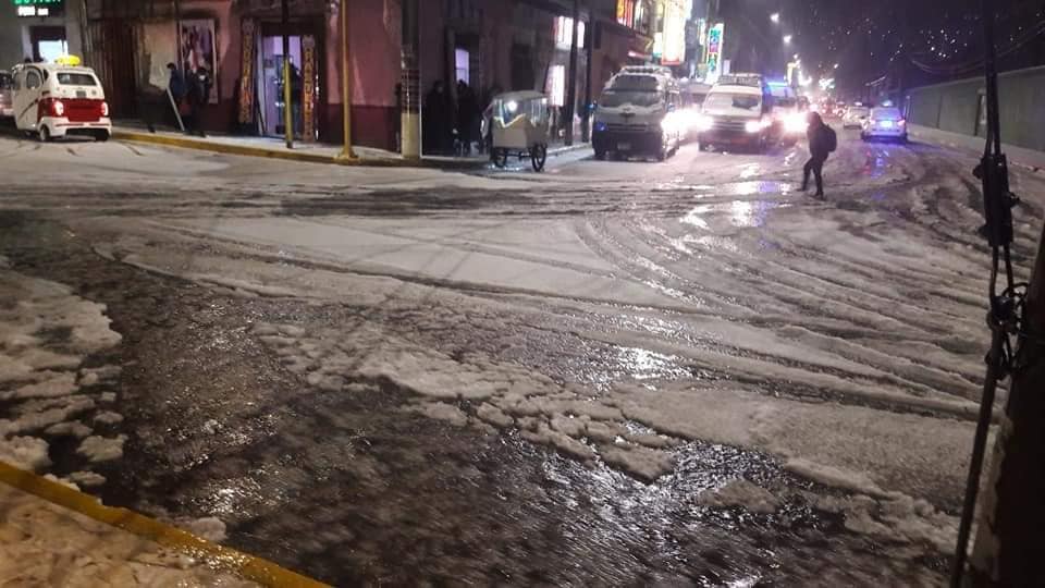 Densa e inusual granizada azotó la ciudad de Puno en horas de la noche. En la mañana, el Senamhi había lanzada una alerta meteorológica para el miércoles, sobre el descenso de la temperatura por la noche… Al parecer, el fenómeno atmosférico se adelantó.