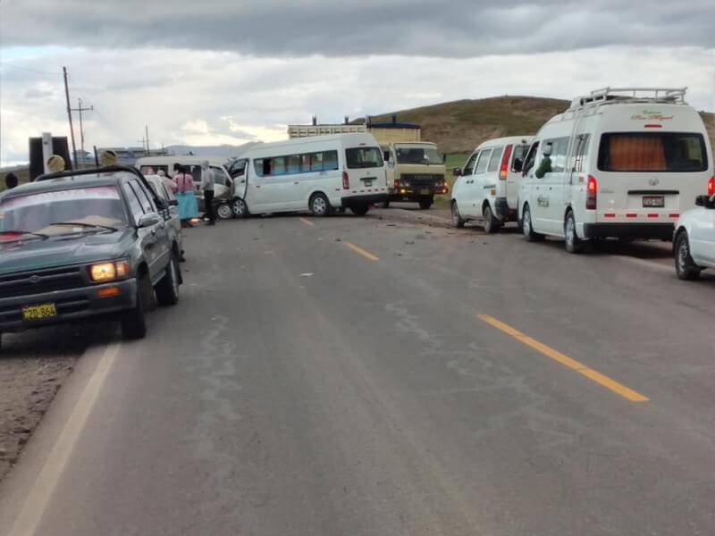 Se trata del choque frontal entre una combi de pasajeros Búfalo, de placa de rodaje X21- 772 y otro vehículo (minicombi) con placa de rodaje Z2Y – 253, que llevó la peor parte. Se conoce que una de las unidades trasladaba a los pasajeros a la zona media de Ilave.