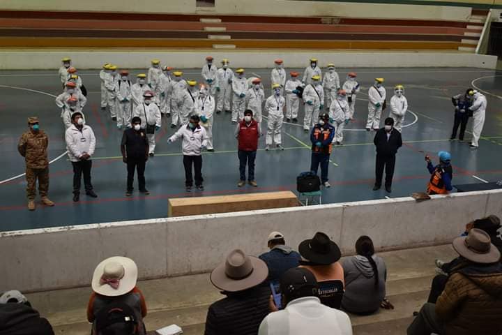 Coliseo cubierto fue lugar de reunión entre las autoridades de centros poblados y la red de salud ,miembros del Equipo de Salud de COVID-19 conformado por los médicos Moisés Chambi Condori y Richar Achahuanco Apaza, se constituyeron a la reunión de las autoridades menores y representantes de organizaciones, exhortaron el apoyo para el cumplimiento de las disposiciones de la declaratoria de emergencia Sanitaria.