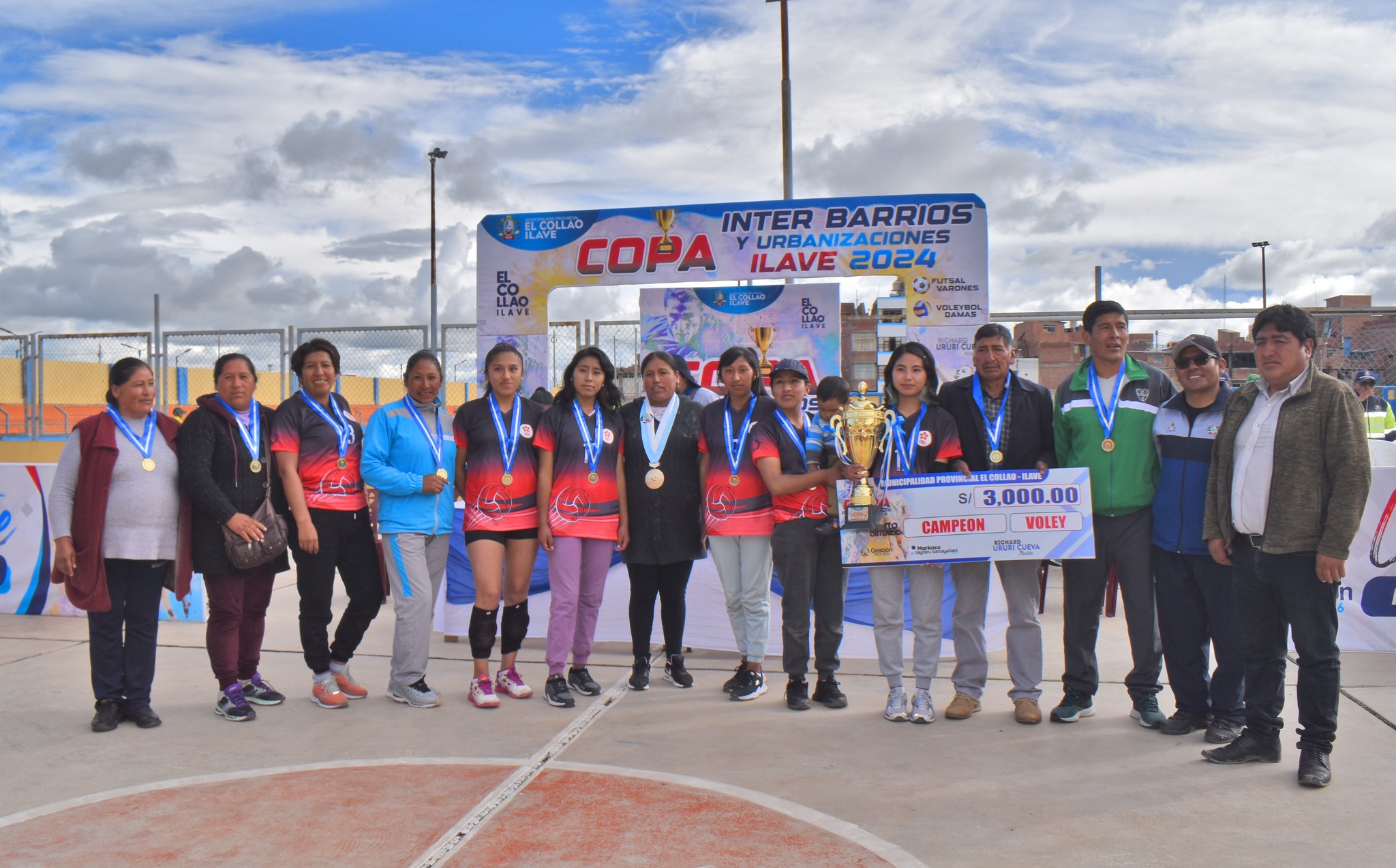 El Campeonato Interbarrios, que se ha revivido tras varios años, concluyó con una ceremonia de premiación y clausura. La Municipalidad Provincial El Collao premió a los tres primeros lugares con un total de 12 mil soles en efectivo, además de trofeos y medallas. Cada barrio participante también fue reconocido con seis sillas.