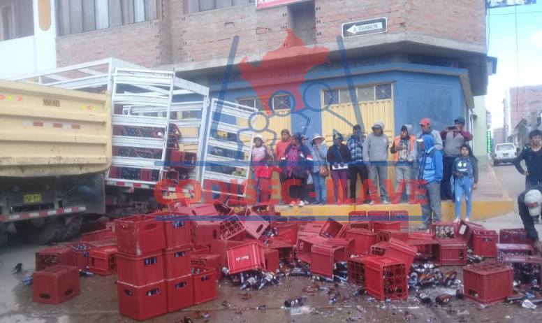 Este  accidente de tránsito ocurrió aproximadamente a las 13:30 horas del día de hoy miércoles , según testigos de este accidente de tránsito habría ocurrido cuando ambas unidades vehiculares pararon en el semáforo el conductor del camión cargado de cerveza perdió el control de su unidad dando marcha atrás sin ningún control, el conductor del volquete se percató de este hecho y retrocedió estacionándose a un lado, luego fue impactado por el camión cargado de cerveza el conductor del volquete Oscar Huanacuni bajo de su unidad para ver los daños ocasionado y fue hay en donde le cayeron encima las cajas de cerveza quedando herido al lugar se hizo presente agentes de Serenazgo de la municipalidad provincial de El Collao – Ilave para auxiliar al herido trasladándolo al hospital de apoyo Ilave .