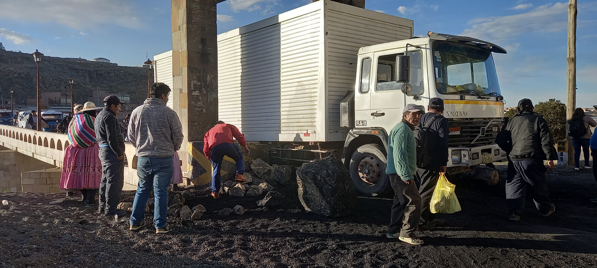ILAVE : CAMIÓN QUEDÓ ATASCADO POR EL PUENTE ANTIGUO Y BLOQUEO EL PASE DE VEHÍCULOS