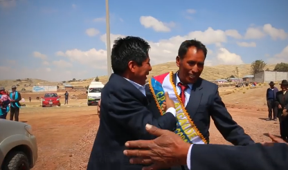 Al compás de banda de músicos y la presencia de los danzarines con trajes de luces (morenadas) y en medio de aplausos, los alcaldes de centros poblados, autoridades comunales y población general, dieron la bienvenida a las autoridades de la comuna collavina, posterior a ello se inició con el acto protocolar de la entrega de obra con la presencia del Alcalde provincial Villanueva Maquera Resalaso, Sub Gerente de Obras Públicas y autoridades de la zona .