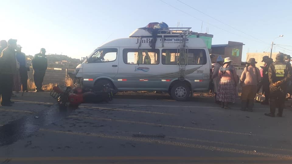 ILAVE : CHOQUE FRONTAL ENTRE COMBI Y UNA MOTO DEJA UN HERIDO GRAVE