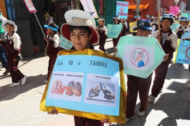 En ocasión del Día Mundial sin Tabaco y como parte de la campaña nacional “El tabaco, una amenaza para el desarrollo”, más de 200 escolares de instituciones educativas de la Provincia El Collao (Ilave) recorrieron las principales calles de la ciudad manifestándose contra la comercialización y el consumo del cigarro.