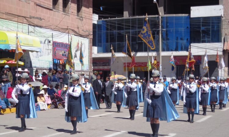 Hoy se realiza el dia central con un acto protocolar y desfile que se cumplirá en la plaza de armas, entre las instituciones educativas invitadas esta de Juli, Maria Asuncion Galindo y Glorioso San Carlos de Puno e instituciones de la ciudad de Ilave de los niveles primaria y secundaria.