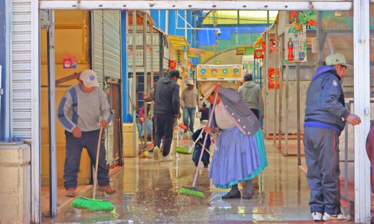 En la vispera, cientos de comerciantes se sumaron a la jornada de limpieza y baldeo del Mercado Central de Ilave.